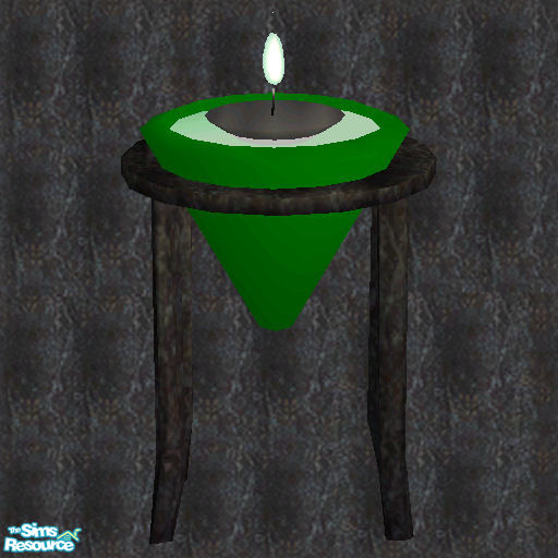 Part V of the candle set. This is a floating candle set into a glass holder and sitting on a metal base. This is an actual candle I have in my house. Green base, black candle recolor. You need the mesh file for this to work!