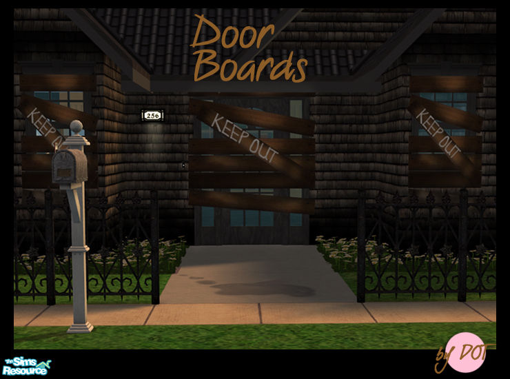 Bored Keep Out Wood. Keep Out Fire Sale Boards for Doors. Sims 2 by DOT of The Sims Resource.