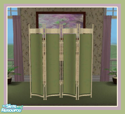 This room divider has a cream colored frame with spring green fabric panels to coordinate with this room set. Recolor of Maxis made object.