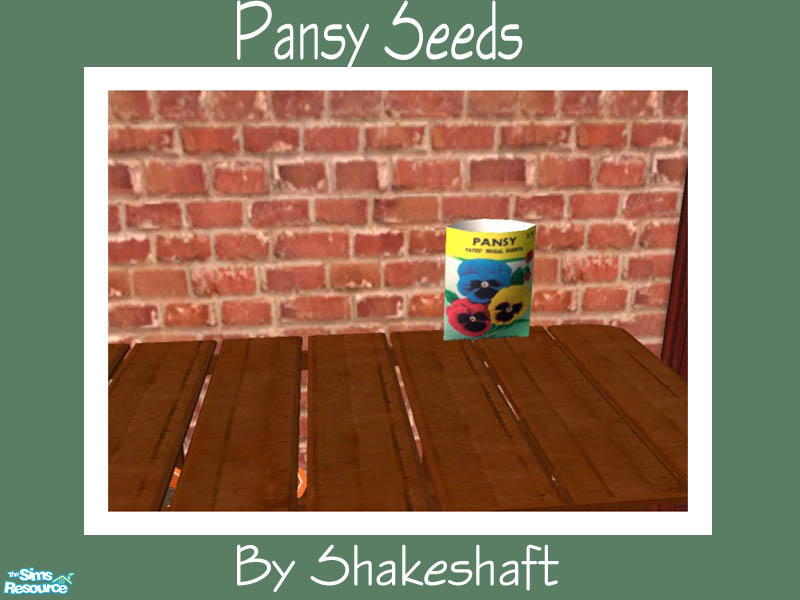 Part of a set of Gardening objects for the Sim with green fingers,set includes a wheelbarrow, spade,rake, seeds and compost and more...set comprises of 13 Meshes and 8 recolours.