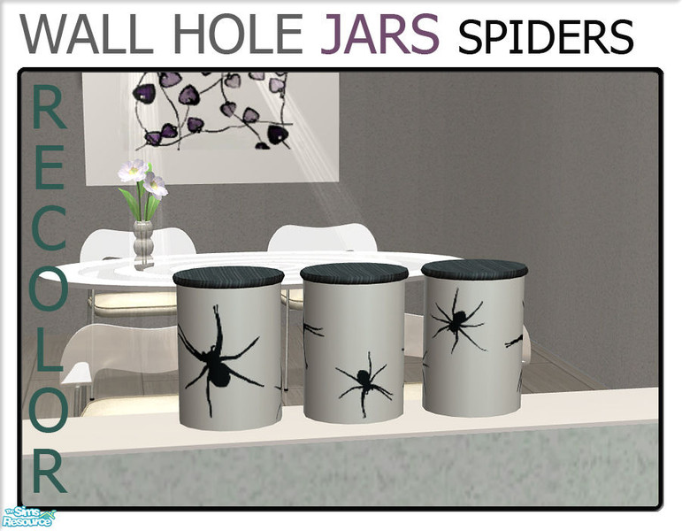 A set of recolors of the jars from my wall hole knick knack set. Use it on the Wall Hole shelf or just for general decorative use ;)