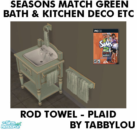 Recolor of Towel ONLY - plaid - for the Towel On Wooden Rod in SM Green Bath Kitchen Deco items to match the Seasons ingame Country Green items and my recolors of SM items. Requires OFB EP. Enjoy! *recolors towel for rod and ring*