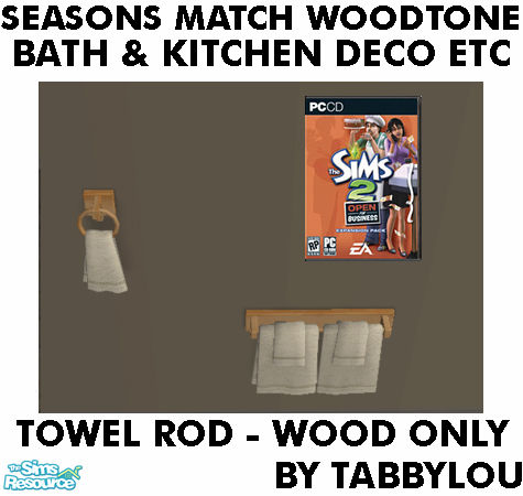 Towel on a Rod - Wood Rack ONLY - in SM Woodtone Bath, Kitchen and More items to match the Seasons ingame Country Woodtone items and my recolors of SM items. Requires OFB EP. Enjoy! *This file also recolors the towel ring wood too!*