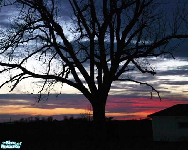 Sunset through a leafless tree. This is a re-color.