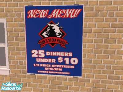 This will show up as a recolour under Maxis Grilled Cheese painting. New Menu Steak House poster for your sims restaurants etc