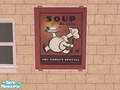 A recolour of Maxis Grilled Cheese Painting. Soup poster. Would be good for your sims cafes & diners etc