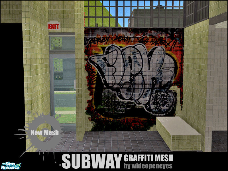 What Subway is complete without some Graffiti to liven up the walls and keep the janitorial staff busy? This is the three tile mesh. Can be placed over any wallpaper but designed for my Subway Tile. Find under Decorative/Wall.