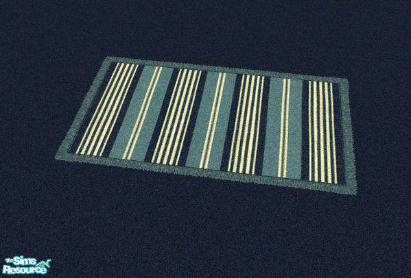 Blue stripe rug with fringe as part of my basic bedroom textiles set. This is a recolour of the Maxis mountain rug (Lies Like a Bear) so you will need Bon Voyage.