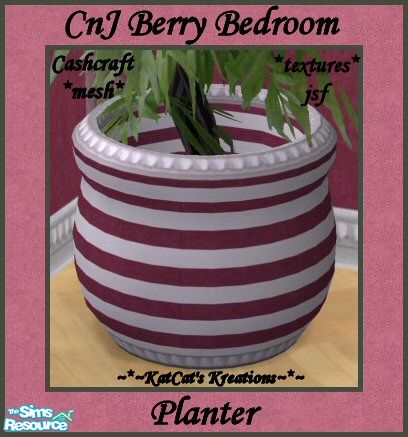 Recolor of Cashcraft\'s \"Vintage Charm Bedroom - Planter Mesh\" using textures from jsf\'s \"jsf Designs Beaded marble Stripes2\" wallpaper. Part of my \"CnJ Berry Bedroom\" set. ADDITIONAL: Potted plants can be placed inside without the use of a cheat.