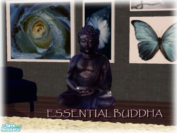 A zen livingroom,in gradiant blue; with a soft rug and a design fireplace. this set was made to fulfill the dream of an intimate and special place; the statue increase the zen feeling of this living, and it\'s blue metallic color is really relaxing and unusual!