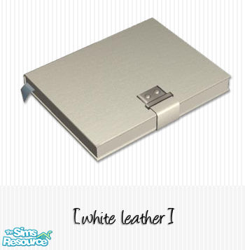 White leather journal with light blue ribbon and chrome latch.