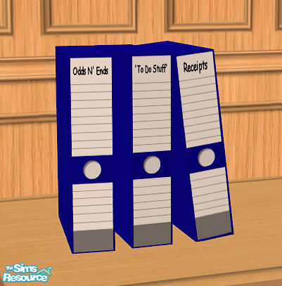 Do your Sims keep misplacing important paperwork? Is their paperwork for their businesses scattered everywhere when it should be hidden away safely? This colourful set of Box Files will keep all of those loose bits of paper neat and tidy. They only require one (any) expansion pack to work.