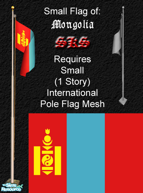 Small Flag of Mongol uls for the 1 story flag pole for your yard. Multiple flags enables the design option. If your nations flag is not available feel free to PM a request to me. By: SKS