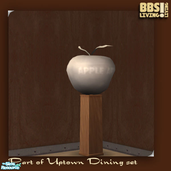 Art object in metal and wood, which says "Apple Art". By BetterbeSim. Do not change and/or re-distribute