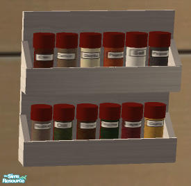 white washed wood spice rack, mesh file needed (inluded in set) for this recolor to show in game, see link below