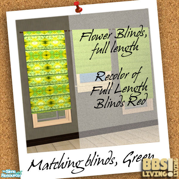 Bright colored blinds, full length or short, plain or with flower pattern. Mix and match for the fullcolor experience.