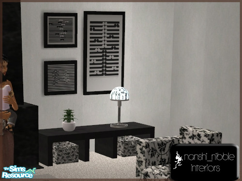Recolour of the MangoSims Kiosque Set (http://mangosims2.free.fr/meubles-sets-salons2.htm) You must have this set in order to use these items. Plants by MangoSims, Wall & Floor by Maxis. Painting by NZ artist Gordon Walters