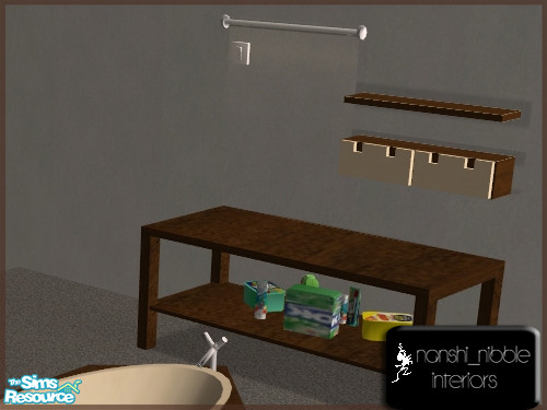Recolour of 11Dots IDEAK bathroom. http://www.11dots.com/decor1.htm You absolutely need this set in order to use these recolours. Walls by Around the Sims and floor by Maxis.