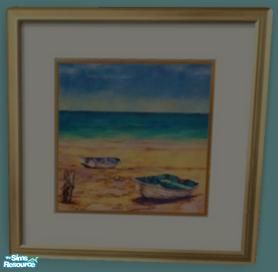 A set of 4 Wendy Wooden Beach prints. Recolours of the maxis \'A Stroke\' painting from Nightlife EP. Pictures of old wooden boats anchored or resting on the beach.