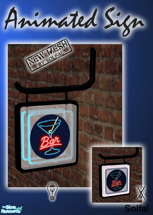 Animated sign. It works as a light, When it is lit the "neon" goes around and It becomes transparent and shines. You find it under decorative/misc