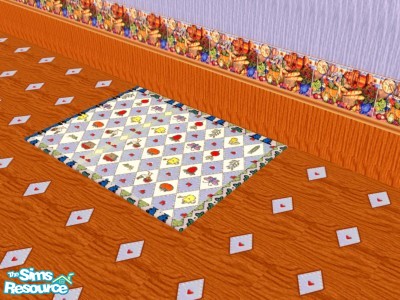 set includes 1 wall, 1 floor,19 items. buffet, bar, bar stool,3 counters, curtains, ceiling lamp dining chair, dining table, dishwasher, expresso, food processor, fridge, microwave, rug set, stove, toaster oven, trash compactor