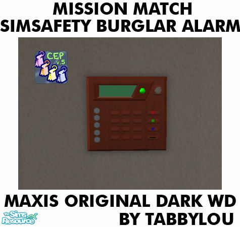 Maxis Original Dark Wood Recolor of Maxis SimSafety V Burglar Alarm in Mission Match OFB Furniture Woods & my wood recolors. Requires CEP. Enjoy!