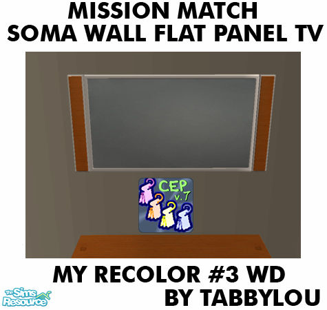 My Recolor #3 Wood Recolor of the BaseGame Soma \"Wall-Eye\" Large Screen Flat-Panel Television in Mission Style Maxis Woods & my wood recolors. Requested by tinajean1. Requires CEP! Enjoy!
