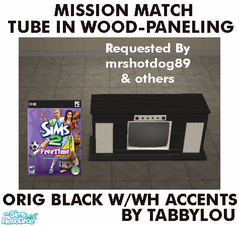Maxis Original Black Wood with White accents Recolor of the FreeTime Floor TV - The Tube in Wood-Paneling in mission OFB woods and my wood recolors. Requested my mrshotdog89. Requires FreeTime EP & CEP. Enjoy!