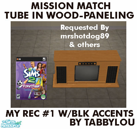 My Recolor #1 Wood with Black accents Recolor of the FreeTime Floor TV - The Tube in Wood-Paneling in mission OFB woods and my wood recolors. Requested my mrshotdog89. Requires FreeTime EP & CEP. Enjoy!