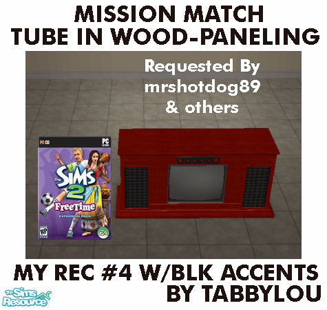 My Recolor #4 Wood with Black accents Recolor of the FreeTime Floor TV - The Tube in Wood-Paneling in mission OFB woods and my wood recolors. Requested my mrshotdog89. Requires FreeTime EP & CEP. Enjoy!