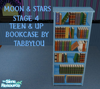 Bookcase for the Teen & Up final stage in Moon & Stars Bluish Set. Stages 1 & 3 in room sets and stage 2 in object sets. Floors & walls by me. Enjoy...