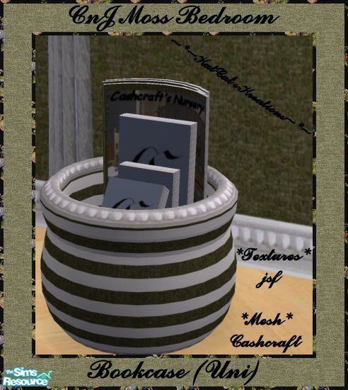 Recolor of Cashcraft\'s \"Vintage Charm Bedroom - Bookcase Univ Mesh\" using textures from jsf\'s \"jsf Designs Beaded marble Stripes2\" wallpaper. Part of my \"CnJ Moss Bedroom\" set. ADDITIONAL: University EP required.
