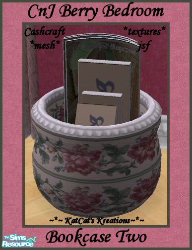 Recolor of Cashcraft\'s \"Vintage Charm Bedroom - Bookcase Mesh\" using textures from jsf\'s \"jsf Designs Beaded marble Stripes2\" & \"jsf DesignsBerryToile&Floral\" wallpaper. Part of my \"CnJ Berry Bedroom\" set.