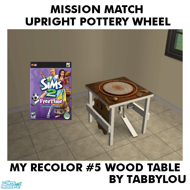 My Recolor #5 Wood table recolor the FreeTime Upright Pottery Wheel by QuicKraft. this was requested by Mrshotdog89. Requires FreeTime EP. Enjoy!
