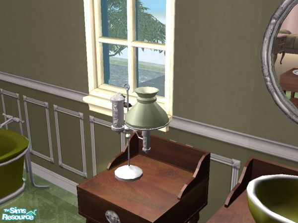 The lamp from the antique bath at 4ESF in silver with a light green shade.