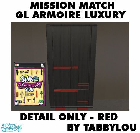 Red Detail ONLY Recolor of Glamour Life Luxury Good Butler End Tables to match the mission style furniture woods & my wood recolors. This set includes wood & detail recolors. Request by lupusdragon. Requires Glamour Life Stuff Pack. Enjoy!