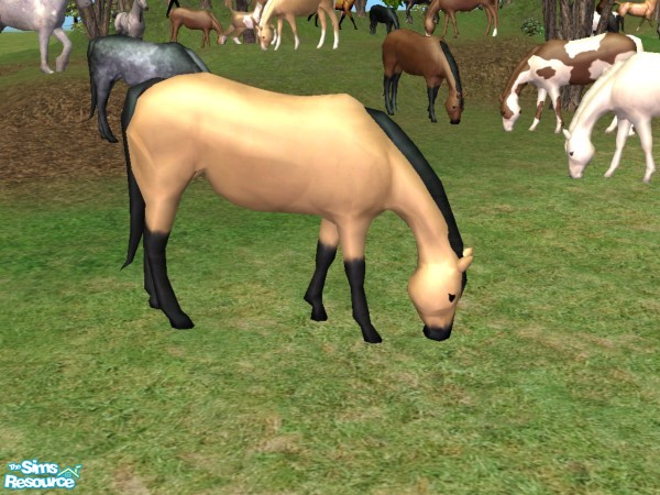 Grazing mare for your sims farm yard. Base mesh is the brown horse with black mane, tail and stockings. Grazing mare can be found under sculptures. Can be used with or without either EP.