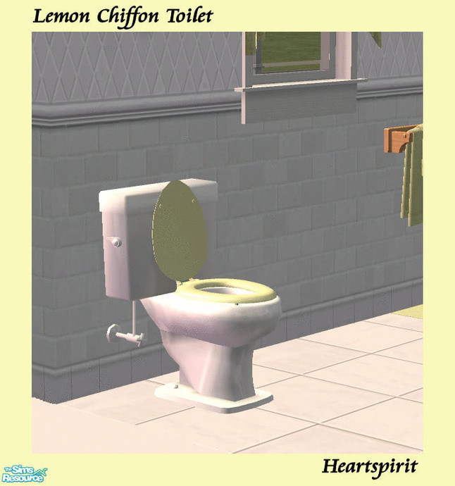 Inexpensive toilet in bright white with a lemon chiffon colored seat.