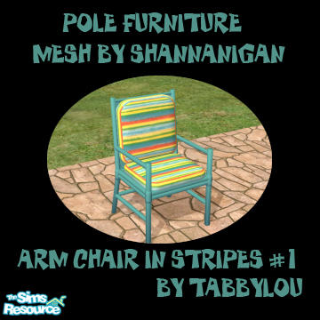 Recolor of Shannanigan's Pole Furniture Armchair in Stripes & Metal (won't rust, peel, fade, chip, etc). This is Stripes #1 Recolor. Enjoy! Make sure you get her meshes so these show up in your game.
