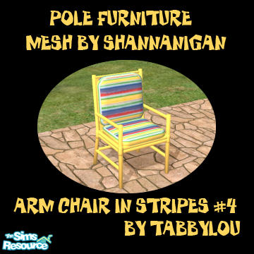 Recolor of Shannanigan's Pole Furniture ArmChair in Stripes & Metal (won't rust, peel, fade, chip, etc). This is Stripes #4 Recolor. Enjoy! Make sure you get her meshes so these show up in your game.
