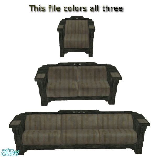 Old wood mission recolors of sofa, loveseat and chair. This file colors all three. Old worn wood and stained fabric.