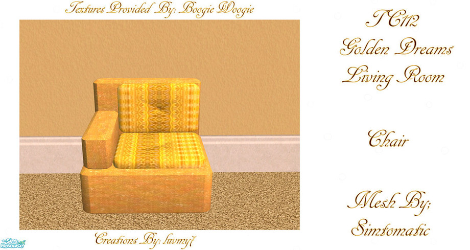 I recolored this Living Room using Simtomatics Awesome Suede Meshes & Serene Curtains and TC112 textures by Boogie Woogie.Includes: Sofa, Loveseat, Chair, Recliner, TV & Stereo Unit, Coffee & End Tables, Stereo, Candles, Twigs Vase, Floor Table & Ceiling Lamps, Vase, Double & Single Curtains. Enjoy!