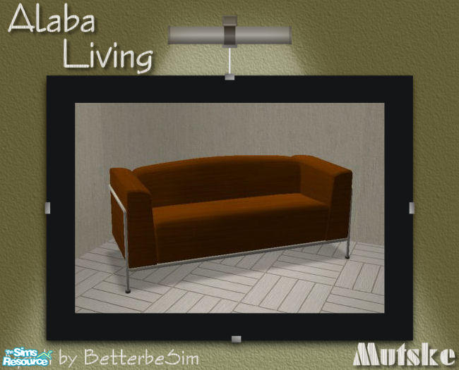 Recolors from BetterbeSim set "Contempo Living". You need these files. In brown fabric and cedar wood.