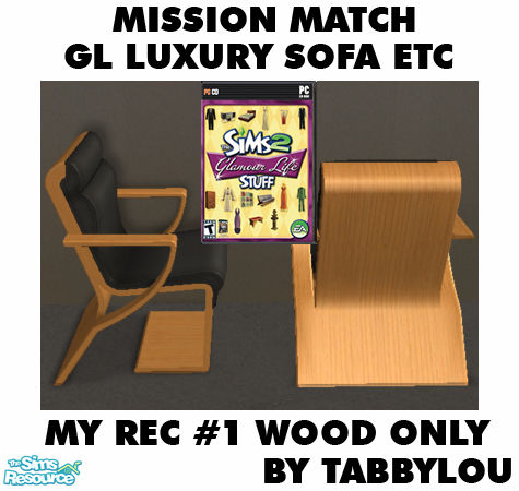 My Recolor #1 Wood ONLY Recolor of Glamour Life Luxury Prosperous Perch (Sofa, Loveseat & chair)to match the mission style furniture woods & my wood recolors. This set includes wood & cushion recolors. Request by lupusdragon. Requires Glamour Life Stuff Pack. Enjoy!