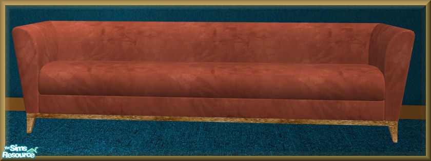A red brick sofa with golden legs.