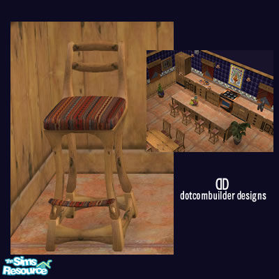 Barstools in rustic wood with mexican tapestry upholstered seats. Coordinates with Mi Casa Kitchen Collection.