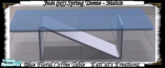 Recolor of the "Coffee for Four by Well Bred and Co." coffee table from the Glamour Life Stuff Pack. Made to match jsf's "Floral Dusky Blue" wallpaper. Part of my "Judi (jsf) Spring Theme - Match" room set.