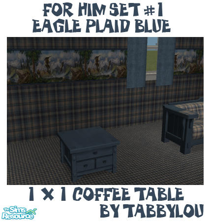 Recolor of Maxis Mission Style 1x1 coffee table for Him in Maxis Mission Style - Eagle in Flight on Blue Plaid. Curtain by Mutske. Enjoy! Pics darker than in Game.