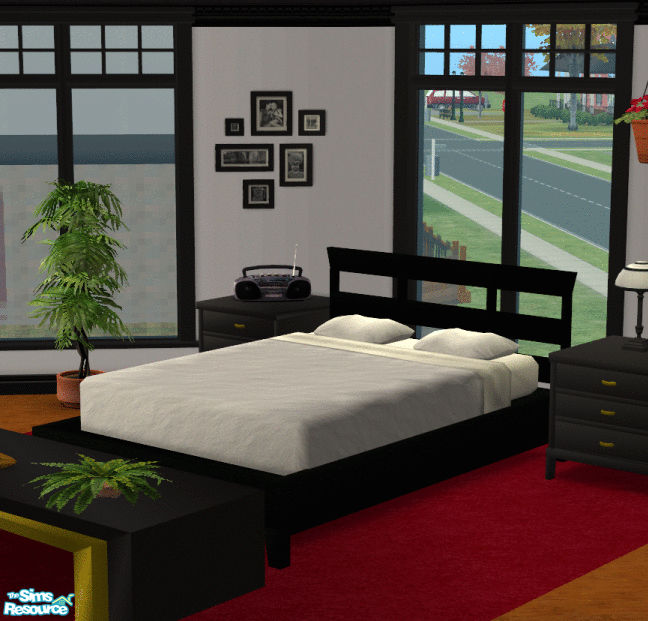 Black bedframe to go with the Horizons bedroom in black. Meshes for the Horizon's bedroom were made by Paleoanth. Black/Brass recolors were done by me.
