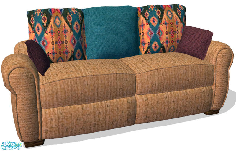 Bold geometric pattern in the colors of a desert sunset combine with turquoise and gold for this stunning loveseat.